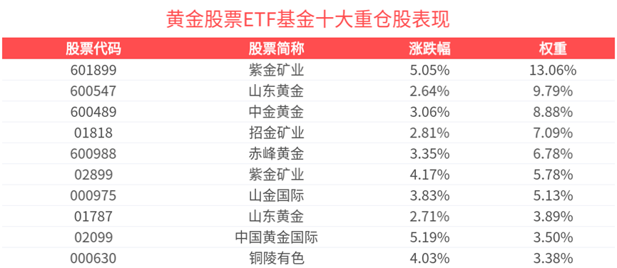 费率方面,黄金股票ETF基金管理费率为0.50%,托管费率为0.10%。